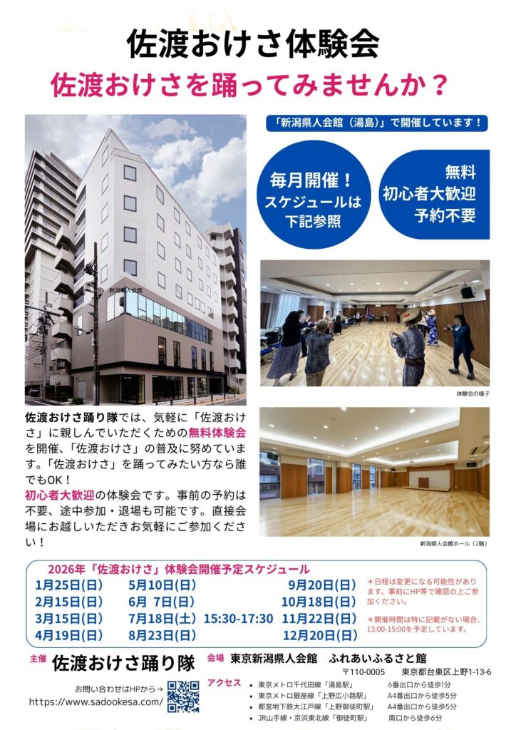 2026年・東京「佐渡おけさ」体験会の年間予定